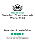 Flavors buffet Restaurant is located at the main building of Dimitra Beach Hotel & Suites and offers a wide variety of flavors in a menu of Mediterranean and International dishes. Enjoy breakfast, lunch and dinner with show cooking with tastes from all over the world. The restaurant features an open-air terrace with magnificent views of the Aegean Sea.